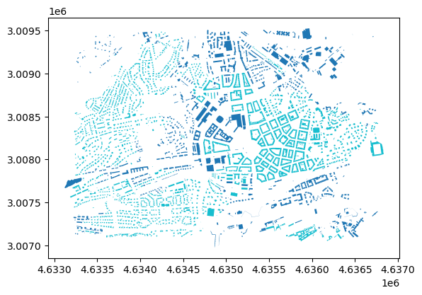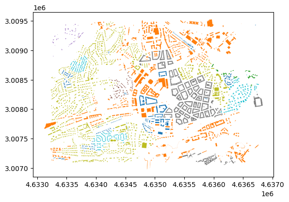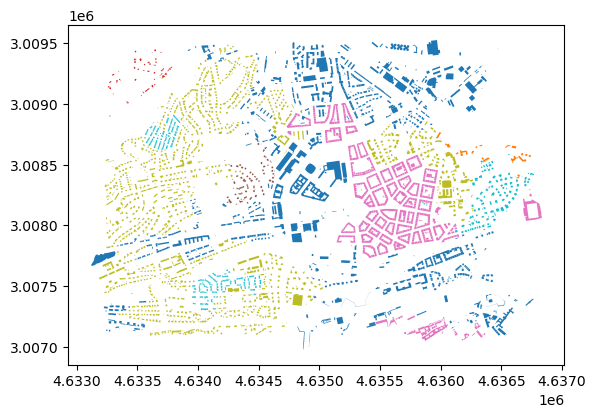 =new_clusters, categorical=True) buildings_subset.plot(column