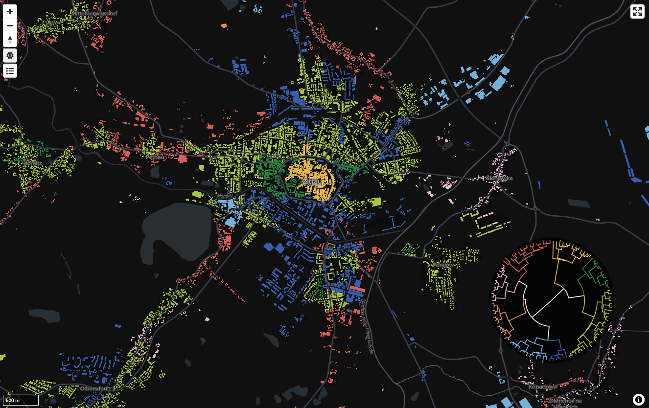 An interactive exploration of the taxonomy at the level of individual buildings.