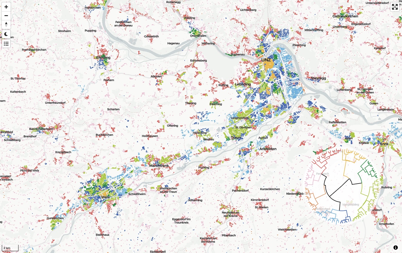 In addition to the tree diagram and the popup, the names of individual branches shown on the map are available in the collapsible legend in the left control centre.